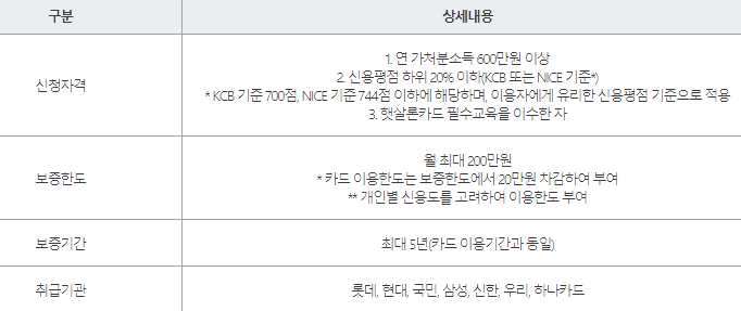 신용카드 발급이 어려워 할부 및 포인트 등 이용혜택에서 소외되는 저신용자분드르이 금융상품 선택을 확대하고 건전한 소비로 이어질 수 있게 하기 위해 신용카드 발급을 지원합니다.