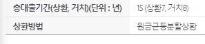 대출 기간은 총 15년으로 거치기간 8년 ,상환기간 7년을 설정하여 빌릴 수 있습니다.