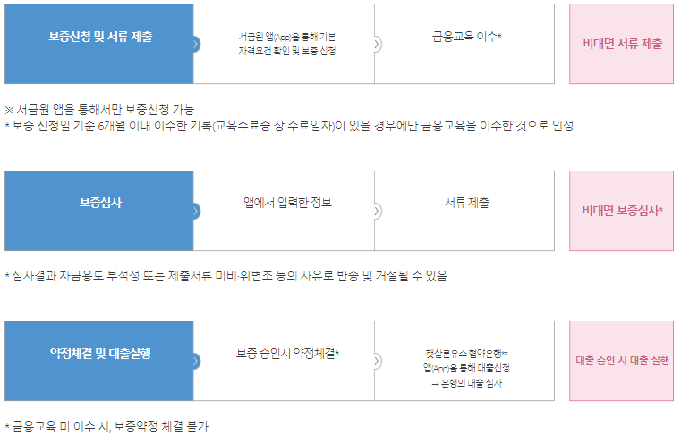 신청은 서민금융진흥원 어플을 통해 보증을 신청해야합니다.