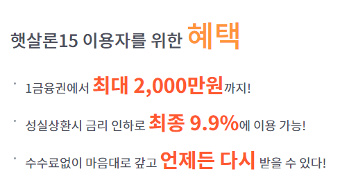 햇살론15는 소득 및 개인신용평점이 낮아 대부업 및 사금융 이용이 불가피한 최저신용자를 제도권 금융이 이용 가능하도록 국민행복기금에서 전액보증으로 생게자금을 지원하도록 만든 상품입니다.