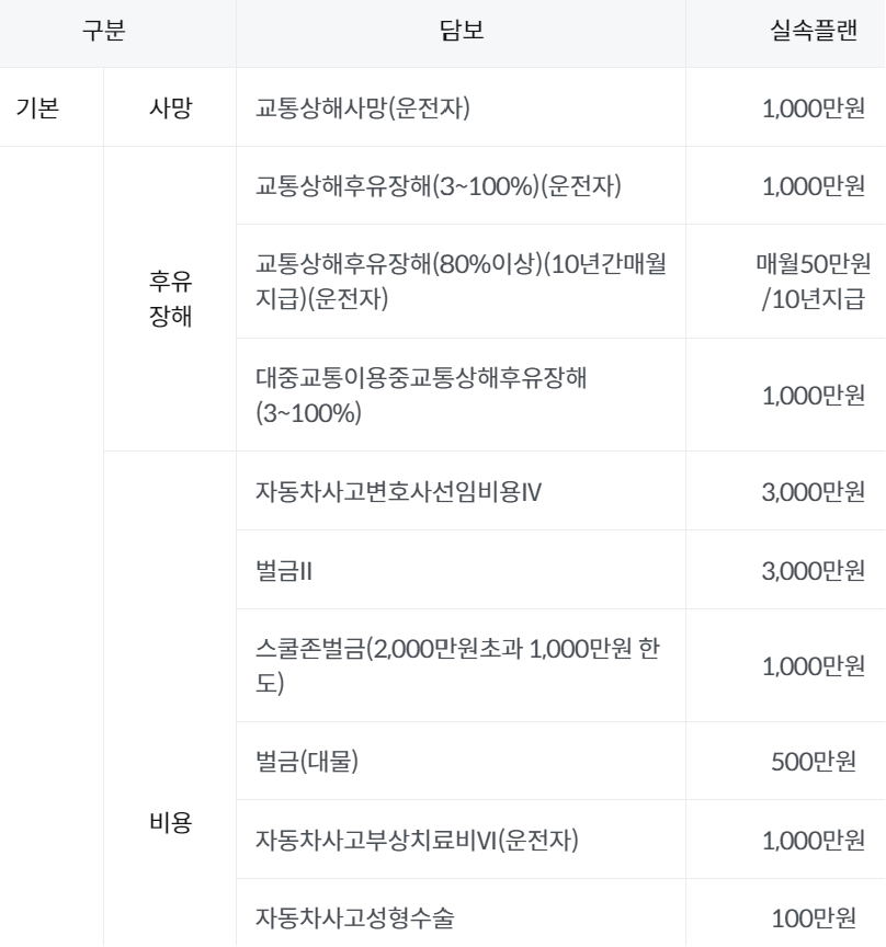 | 교통상해사망(운전자) | 교통상해로 인해 사망시 | 가입금액 |