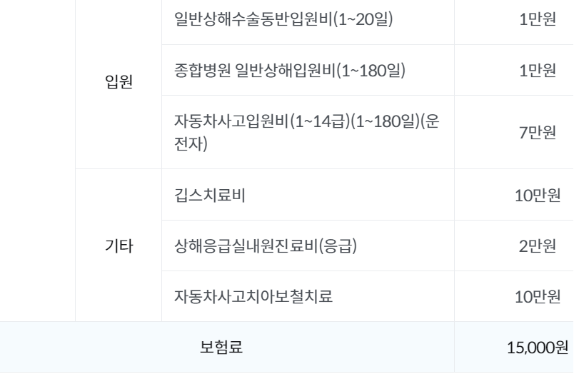 | 상해응급실내원비(응급) | 상해사고로 응급으로 인한 응급실 내원시 | 매 내원시마다 가입금액 |