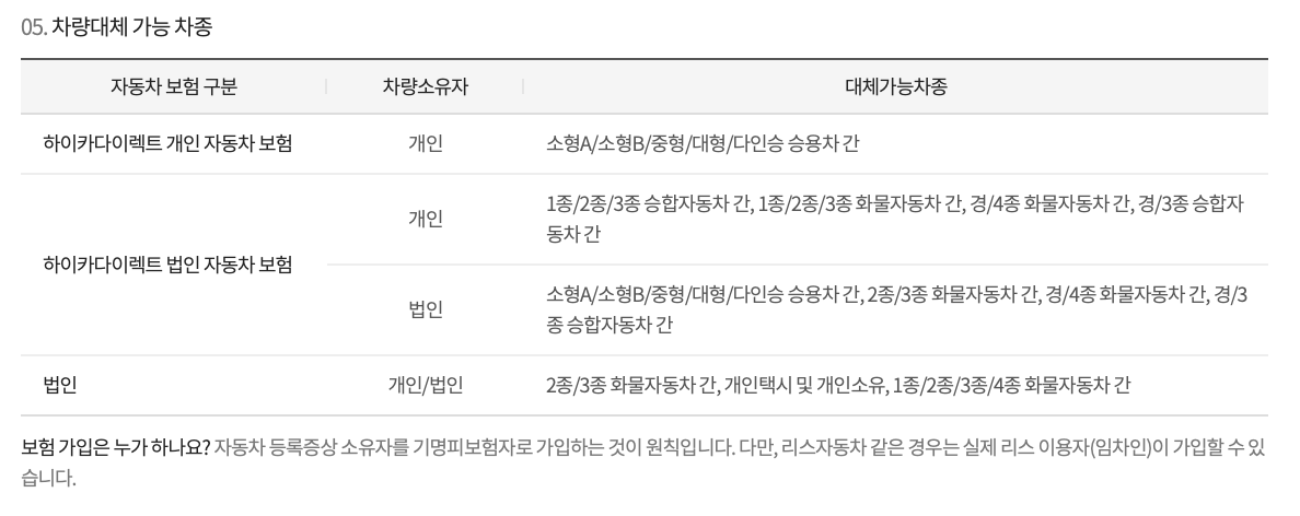 - 타인차량손해: 1사고당 최대 3억원까지 보장합니다. 타인의 차량에 사고로 인한 파손, 도난, 화재 등을 입힌 경우에 보상해줍니다.