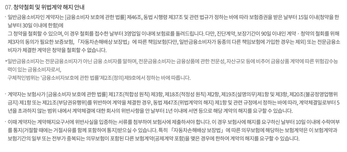 현대해상 다이렉트 자동차 보험 보장 내역 및 보장 금액