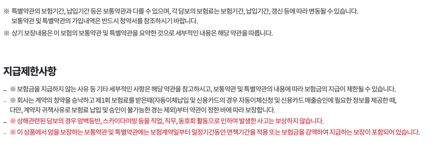 - 보장되는 암의 범위가 제한적이므로, 모든 암에 대해 안심할 수 없습니다.