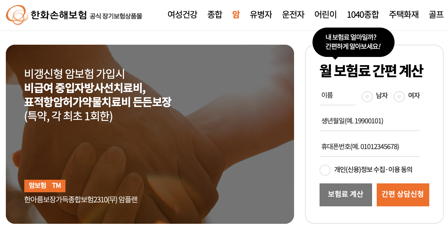 한화손해보험 다이렉트 암보험의 보험료 조회 및 가입 방법