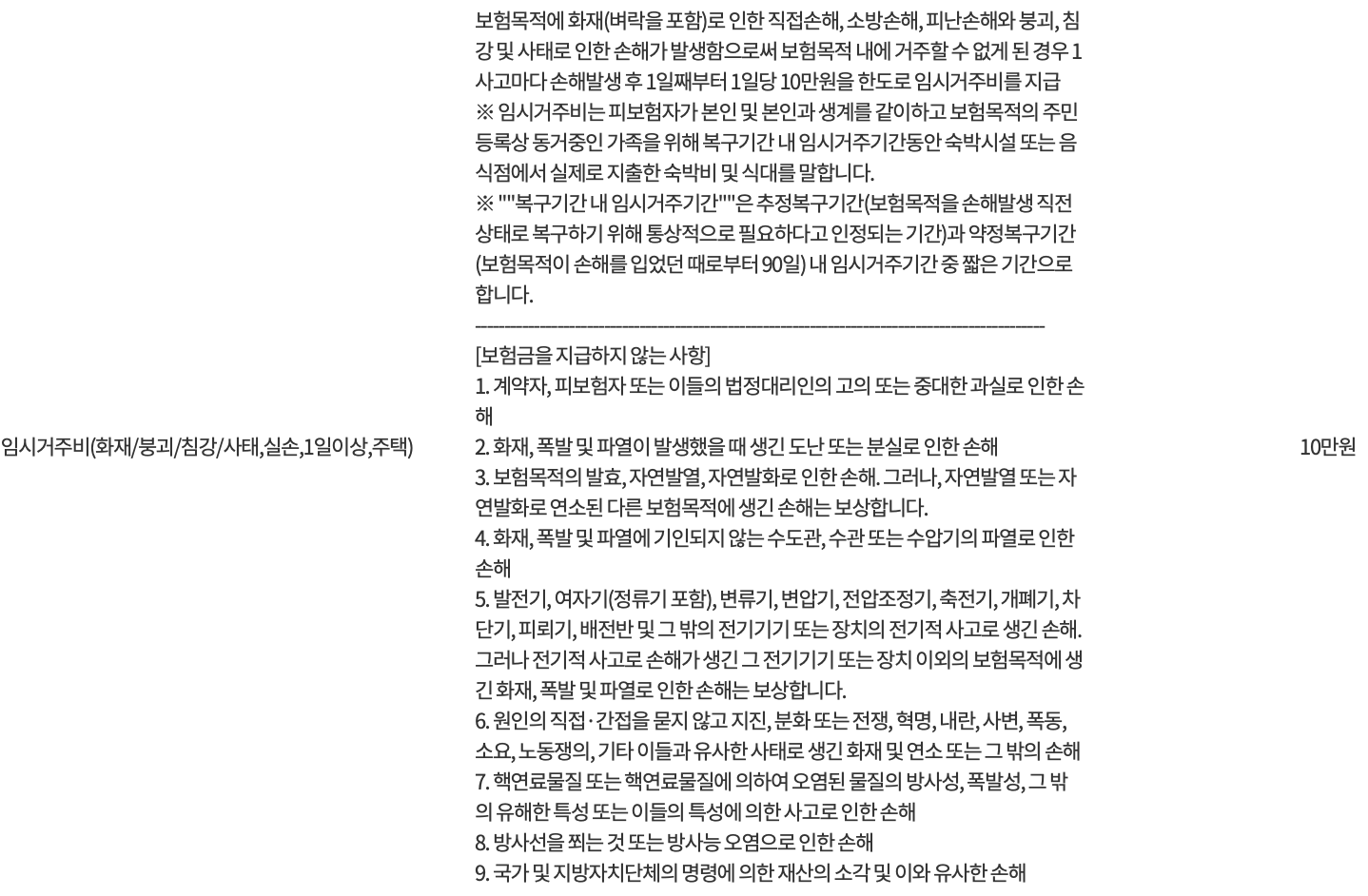 한화손해보험 다이렉트 주택화재 보험의 보장 범위 및 보장 금액