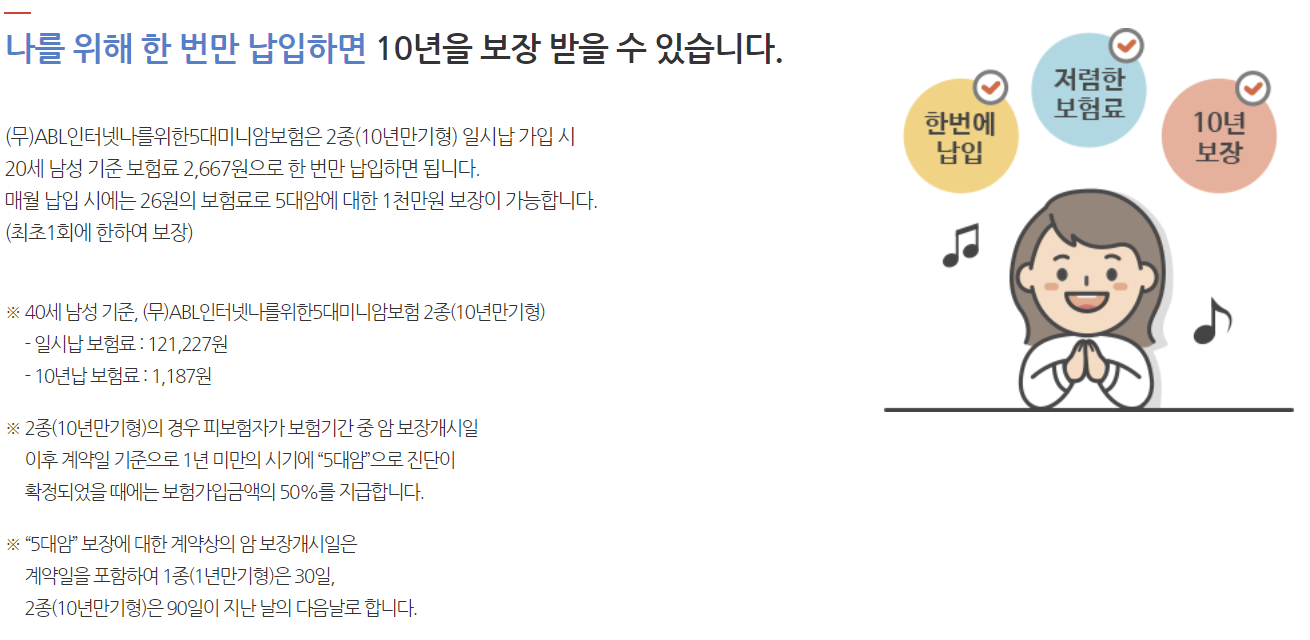 에이비엘(ABL)생명 나를위한5대미니암보험 보장내용 특징 보험료 및 암보험 가입 시 주의사항
