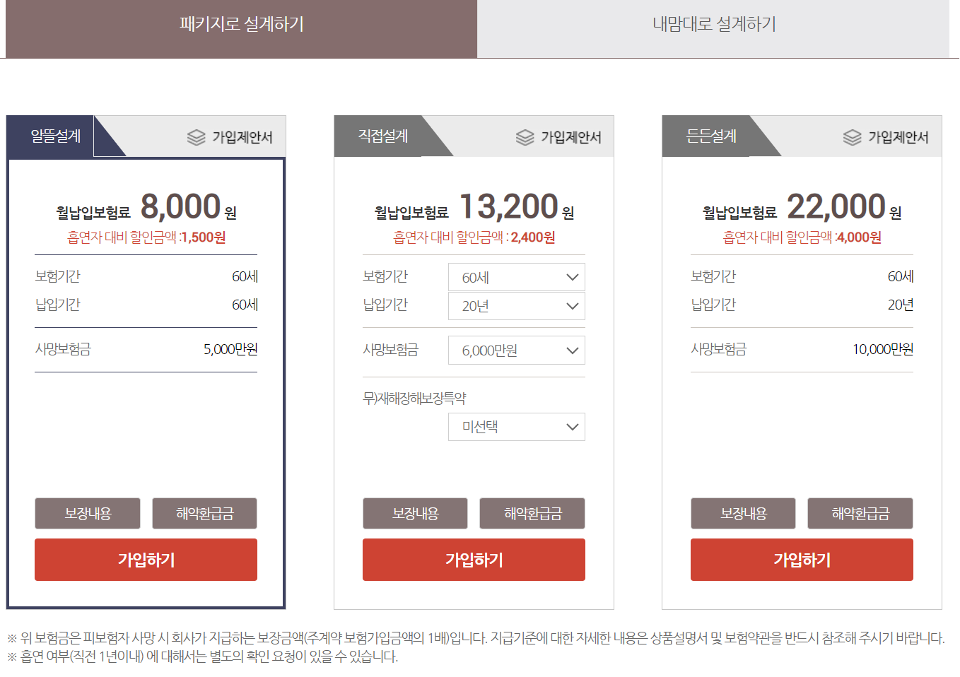 보험료는 패키지, 내맘대로 설계가 있으며 플랜마다 다릅니다.