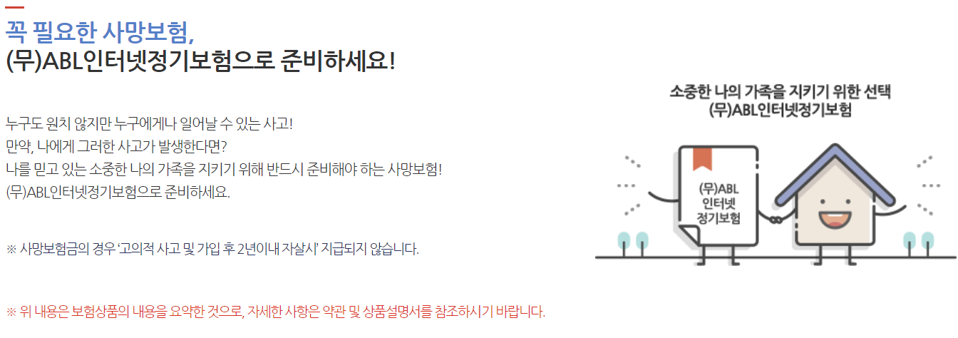에이비엘(ABL)생명 인터넷정기보험 보장내용 특징 보험료 및 정기보험 가입 시 주의사항